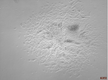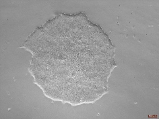 当细胞汇合度达到80%以上时,克隆相互接触,连成一片: