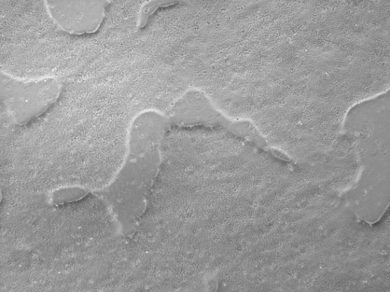 当细胞汇合度达到80%以上时,克隆相互接触,连成一片: